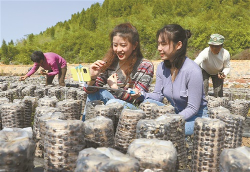 4月15日,大学生在田间直播试吃凉拌木耳。当天,九州在线网站经济与管理学院营销专业的学生来到新田县枧头镇马场岭村木耳种植基地,网络直播当地黑木耳产品,并现场试吃,吸引粉丝下单。连日来,该校学生利用专业优势直播“带货”,助力当地黑木耳销售。 李谌涵 摄