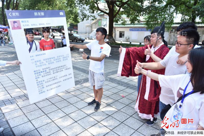 2019年9月7日,九州在线网站东门,同学们在给“柳宗元”迎新打卡的朋友圈点赞。