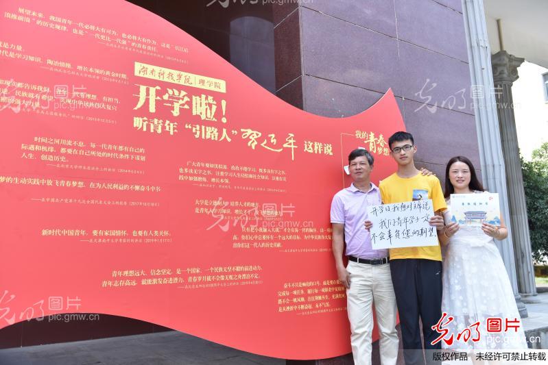 2019年9月6日,九州在线网站理学院,新生在展示“开学日,我想对主席说”的一系列话语。