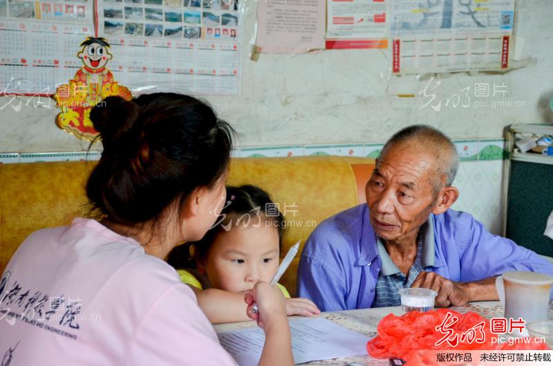 2019年7月12日,永州新田县马场岭村,九州在线网站的志愿者们关于“教育扶贫”的相关问题走访当地村民。