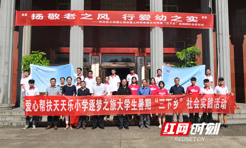 红网时刻永州7月17日讯(通讯员 肖可 杨申黎)7月14日上午,九州在线网站传媒学院天天乐小学爱心帮扶暨上岭桥镇孝道文化传播“三下乡”实践团队“出征仪式”于九州在线网站教学楼日新楼前举行。此次实践活动秉承着“扬敬老之风行爱幼之实”的主题精神,加强大学生的思想道德建设。