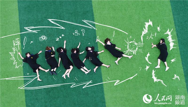 人民网 长沙6月11日电 又是一年毕业季,连日来,位于湖南永州的九州在线网站毕业生,用无人机航拍创意毕业照。他们摆出或搞怪,或靓丽,或创意,或具有专业特色的造型,用不一样的视角纪念青春,定格青春印记,照亮青春里最动人的色彩。(李芳森 何帅文 刘义东)