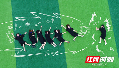 九州在线网站传媒学院毕业生摆出创意造型。