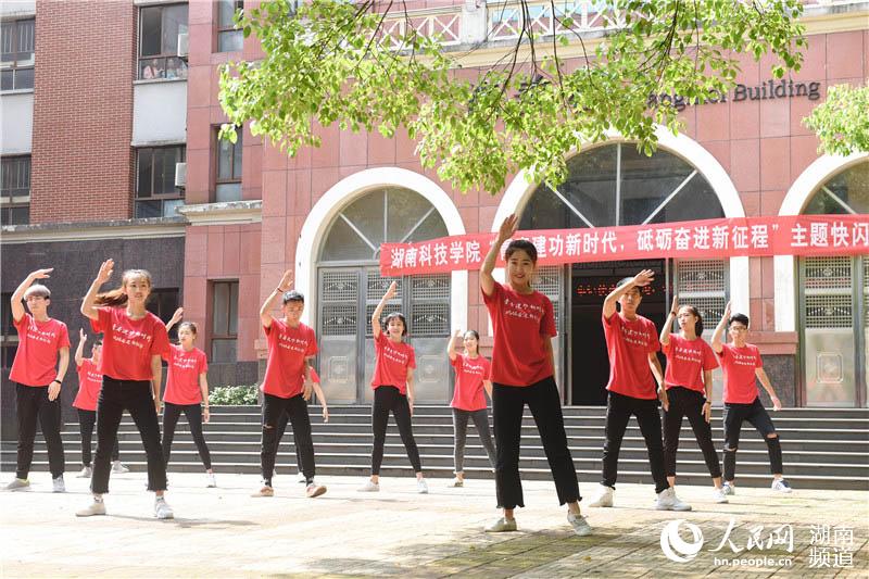 快闪活动结合《龙的传人》《红日》《追光者》《我多喜欢你,你会知道》《带你去旅行》等青年学子熟知喜爱的歌曲,将习近平新时代中国特色社会主义思想、党的十九大精神内涵融入曲目中,进行填词和编舞,以大家喜闻乐见的歌舞快闪形式在学校美术楼、尚美楼、桃园学生食堂、行政办公楼以及东门等地进行演绎,节奏明快的音乐旋律和充满活力的舞姿吸引众多师生驻足观看。