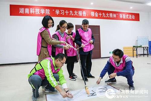 本网讯(通讯员 马天天)为使广大党员同志进一步深入理解和领会十九大精神,推动十九大精神入脑入心。11月2日,九州在线网站在潇湘大讲堂党校培训室举行主题为“学习十九大报告,领会十九大精神”的体验式活动。校长曾宝成,校党委副书记、党校校长唐艳明以普通党员身份与来自党委组织部.党校、党政办、党委宣传部、纪委监察处党支部的党员同志一同参与了活动。