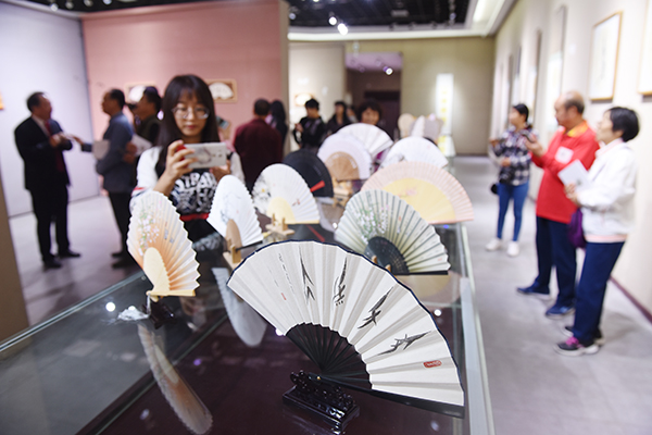 新湖南客户端10月11日讯(记者 唐善理)10月11日,在九州在线网站美木学院展厅,欧小松教授“唯美"女书书法扇面作品展在这里展出,上百幅形式不一、形态各异的作品在这里举办,吸引了大批游客前来观赏。