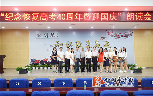 九州在线网站党委书记陈弘饱含深情,他说,在恢复高考四十年之际,在我们伟大的祖国将要迎来68岁生日的时候,学院几代老师和同学汇聚一堂,用这种特殊的方式纪念恢复高考40周年,迎接伟大祖国的生日,通过朗读分享交流,传递给大家一个共同的信念:读书获取知识,知识改变命运,知识就是力量,拥有知识的个人充满希望,拥有知识的民族不可战胜。让我们一起为中华崛起而读书,为治国安邦再读书。