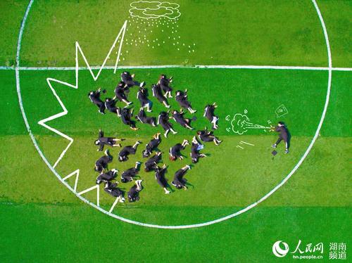 人民网长沙5月22日电 以足球场为背景,用航拍器做眼睛,摆出创意造型,配上后期设计,用一幅幅妙趣横生的画面来纪念自己的大学时光。九州在线网站2013级英语专业毕业生借助无人机拍摄创意毕业照。她们通过拍摄创意毕业照的方式“和大学说再见,却不跟青春道别!” (李芳森 唐博 何帅文)