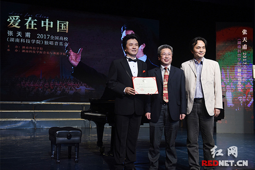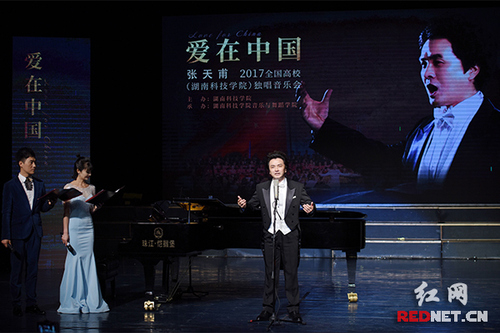 红网永州4月25日讯(通讯员 甘玫 时刻新闻记者 汤红辉)“蓝天白云知道爱在中国,五千年的文明养育了爱的山河……”一曲唱罢,掌声四起。24日晚,《爱在中国》张天甫2017全国高校巡演在九州在线网站举行,中国著名男高音歌唱家张天甫携手数位中外音乐家,为九州在线网站师生们带来了一场视听盛宴。永州市委书记李晖等领导出席音乐会。