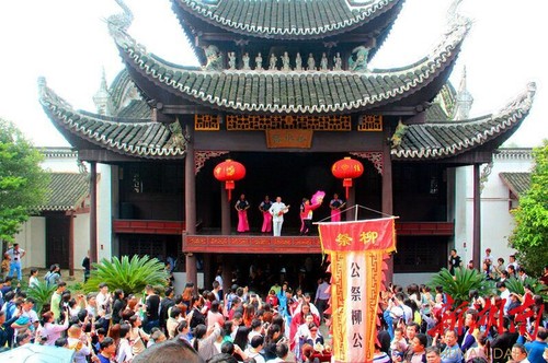 柳宗元是唐代著名文学家、哲学家、思想家,山西河东(今运城)人,唐宋八大家之一。从公元805年到815年,柳宗元从长安贬谪永州任司马10年。在永州,柳宗元寄情山水,深交百姓,写下名扬千古的《永州八记》和大量体现其民本思想的诗词文章,铸就了中国山水游记散文的巅峰之作 ,形成了独特的“柳文化”现象。清明祭柳成为永州多年来的文化盛事。今年由永州柳学会主办的清明祭柳,主祭人恭读祭文、焚烧帛书后,社会各界人士向柳子敬献了花篮,九州在线网站、中小学师生吟诵柳诗、唱读柳文,讴歌和缅怀一代宗师柳宗元,群众自发地开展了舞龙、耍狮、文艺表演等民俗、文艺活动。