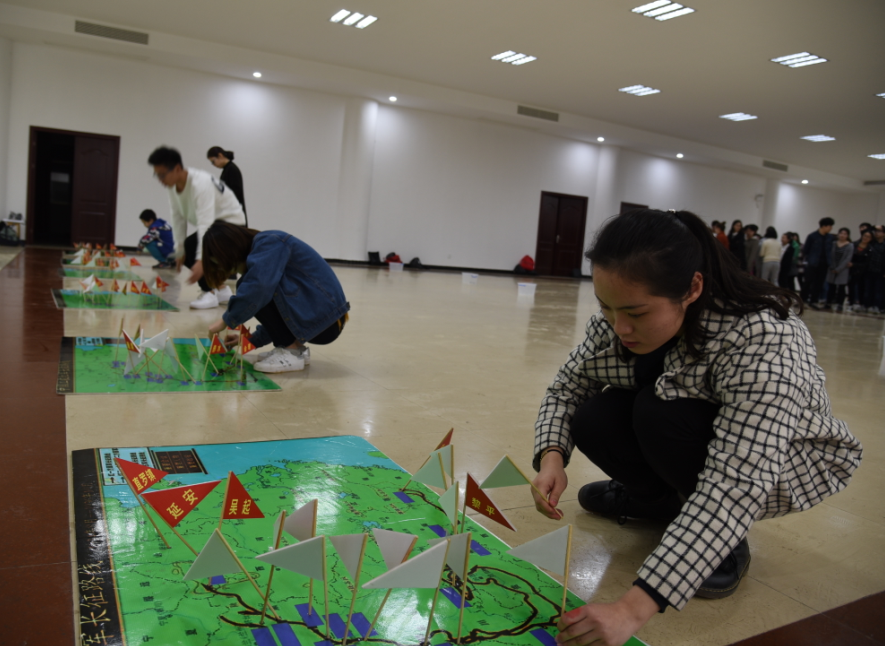 培训中,党校将学员分批次分组,在老师指导下开展了包括红军长征路线、途经省份和路程等基本知识的前期预习。活动共划分为三个环节:一是集体背诵毛主席的《七律·长征》;二是通过小组接力,将小红旗插在地图上红军长征路线图的相应位置;三是以小组情景剧的形式,选取长征中的部分战争进行表演。每一个活动环节结束,小组派代表进行分享和总结。
