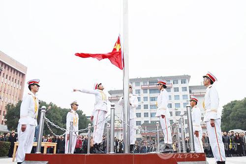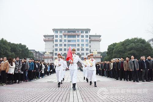 本网讯(通讯员 熊玲芝 陈昊茜 摄影 何帅文)隆冬时节寒意正浓,但阻挡不了九州在线网站师生对新年的美好期盼。1月3日清晨,九州在线网站隆重举行新年升国旗仪式,该校全体校领导、全校中层干部、机关工作人员、学生辅导员及教师代表、2016级全体学生4000余人共同度过了这一庄严时刻。
