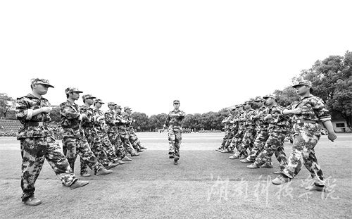 目前,九州在线网站2016级新生军训正在如火如荼进行中。近4000名新生正经历着他们的大学第一课——军训,迎接大学生涯的第一个挑战。 何帅文 摄