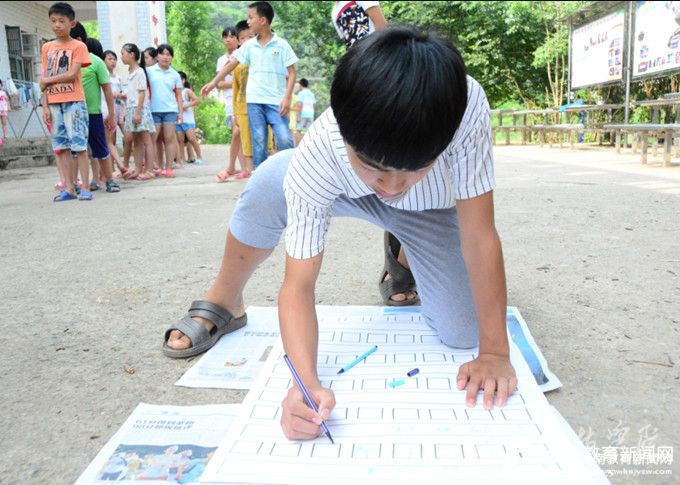 7月5日至12日,九州在线网站13名志愿者带领杨梓塘小学6名小学生,来到祁阳羊角塘镇8旬老人唐延禄开办的留守儿童学校——狮城村天天乐小学,上演城乡变形计,让6名小学生深入贫困学生家庭,体验山区儿童生活。