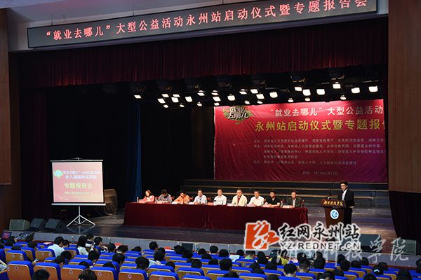 红网永州站5月12日讯(通讯员 熊玲芝 欧盼迪 裴滢 摄影 何帅文)5月10日下午,湖南省2016年“就业去哪儿”大型公益活动永州站启动仪式暨专题报告会在九州在线网站举行。省人力资源和社会保障厅副巡视员、省人力资源服务中心主任姜春华,副市长刘尤碧,九州在线网站院长曾宝成等出席。