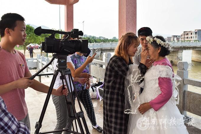 本网讯(通讯员 熊玲芝 何霞 周盈 摄影 “爱迹路”摄影团队)黑色西装配纯白婚纱,或在夕阳照射的校园里含笑对视,或在和煦阳光下的草坪牵手漫步……5月8日正值母亲节之际,九州在线网站学生自发组成的“爱迹路”摄影团队带着对广大母亲最美好的祝福,免费为老夫妻拍摄婚纱照,送上最温馨的母亲节礼物。