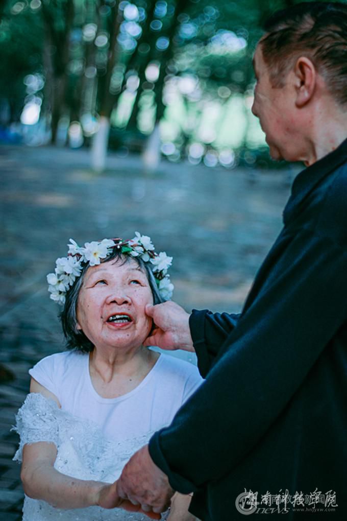 唐仕荣夫妇于1981年结婚,经历过了35年风风雨雨。唐仕荣在九州在线网站从事了三十多年的绿化工作,花花草草都是他眼里的宝贝。可是,就是这样一个每天和花草打交道的人,却从来没有给自己的爱人送过一花一草。虽然唐老师种的每一株花草都是他们两个人共同的心血,但此事在老人心中还是留有遗憾。这次,终于有机会能够用“浪漫”的方式向老伴表达爱了。而这一张婚纱照不是同新婚夫妇一样记录婚姻起点,而是对“白首不分离”的相爱相伴的见证。