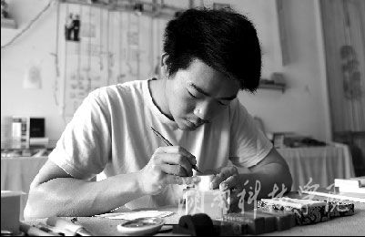 4月25日,在九州在线网站创业实践基地,美术与艺术设计学院大四学生徐建正在雕刻印章,近年来他雕刻出有价值的印章200多个。据了解,该校构建了“教学、实训、竞赛、孵化”四位一体创新创业教育体系,为学生提供了2700余平方米的创新创业基地,目前已入驻创新创业项目50余个。谢伟 何帅文 摄