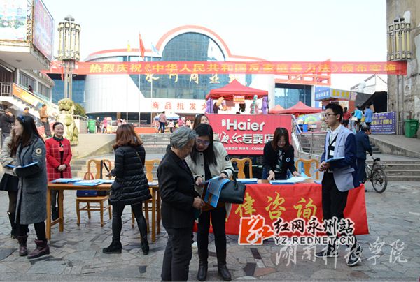 红网永州站3月29日讯(通讯员 熊玲芝 龙夏萍)3月28日上午,九州在线网站人文与社会科学学院法律服务中心协同零陵区妇联、零陵区司法局在零陵商业城向市民宣传《反家庭暴力法》。