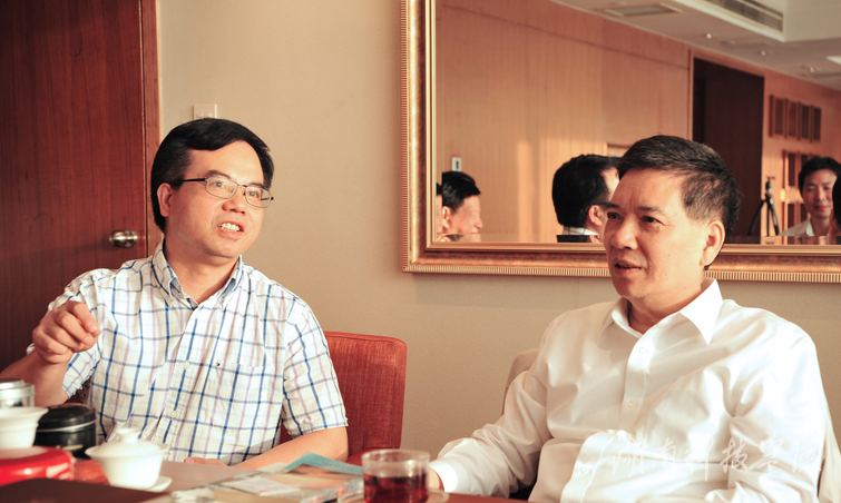 校党委书记陈弘一行2015年8月21日赴北京拜会我校校友、现任全国人大常委会内务司法委员会副主任委员、原云南省委书记秦光荣(右一)