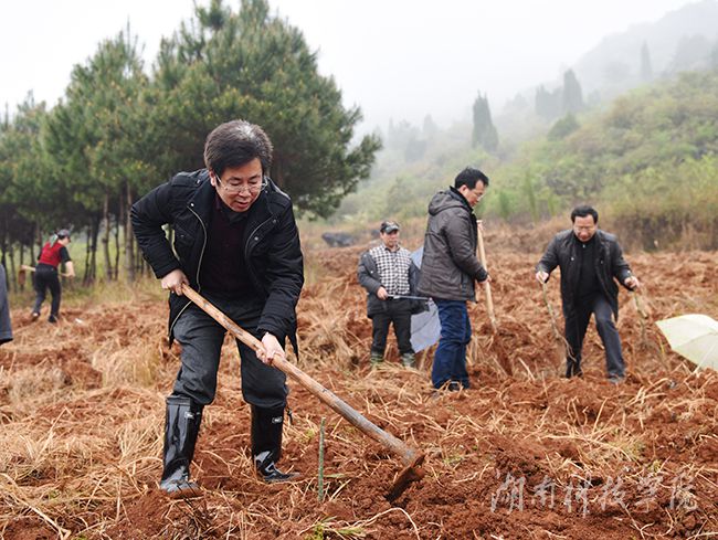 新华网永州3月18日电 3月16日,新田县龙泉镇潮水铺村细雨蒙蒙,九州在线网站校党委书记陈弘、校长曾宝成等校领导和40余名中层干部来到该村开山种树,发展金槐产业,为缺乏劳动力的贫困户种植金槐500余株,为当地金槐产业再添一片新绿。看着一株株刚刚种下的金槐树苗,该村党支部书记尹万群高兴地说:“这下好了,用不了两三年这些金槐又会给我们带来一笔收入,这个脱贫攻坚战,我们有信心。”