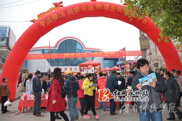 红网永州站3月16日讯(通讯员 熊玲芝 龙夏萍)如何让普通百姓学法、知法、懂法并主动使用法律来维护自身的消费权益? 3月15日,由九州在线网站人文与社会科学学院法律服务中心牵头,零陵区司法局、零陵区农业局、零陵区药监局及零陵区潇湘门社区联合举办的“携手共治,畅享消费—3.15消费者权益保护大型公益普法活动”在零陵商业城举行。