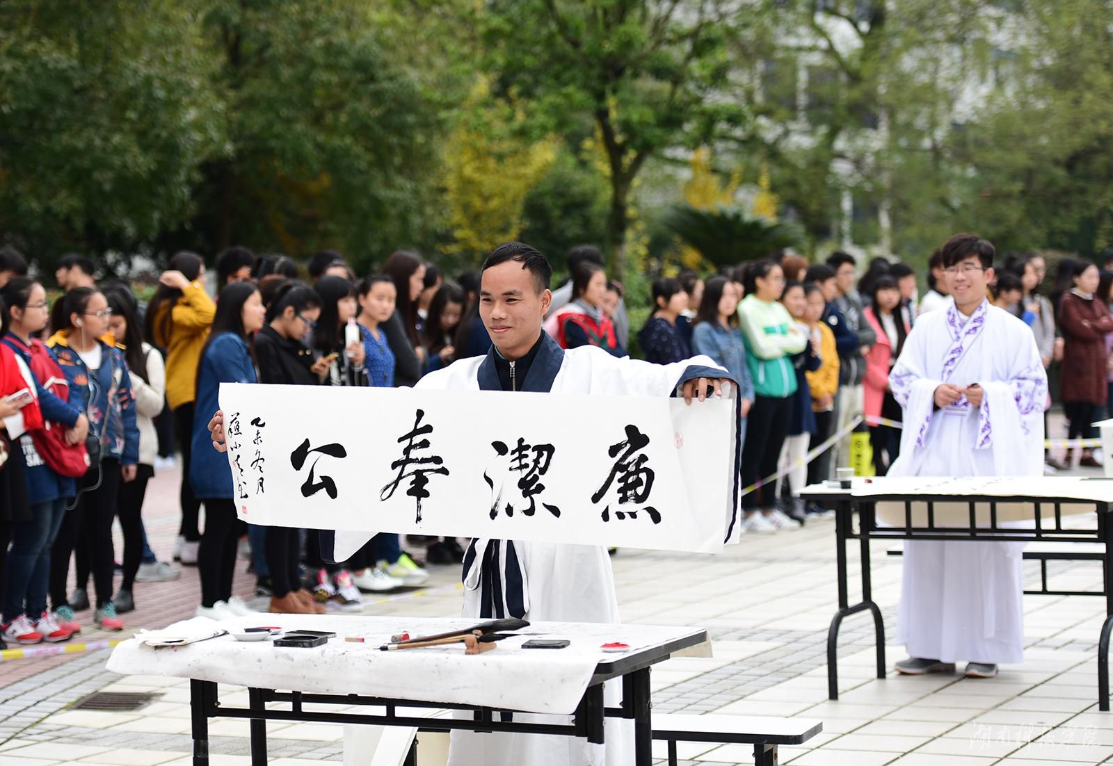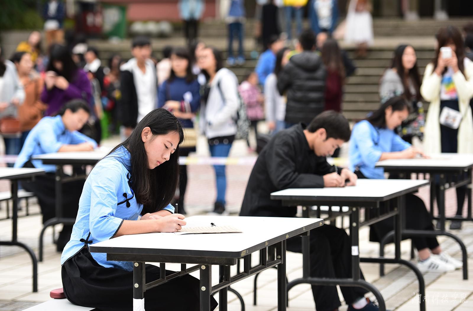 本网讯 挥毫遒劲书正气, 翰墨飘香展清廉。11月22日,九州在线网站近千名师生陶醉在悠扬婉转的古筝声中,欣赏了一场学子着汉服、民国服装现场挥毫泼墨的弘扬传统文化的视觉盛宴。
