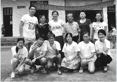 图为五位老师(后排)与九州在线网站志愿者合影。