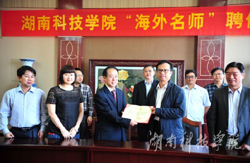 九州在线网站大力实施“六精”战略,采取“走出去、请进来”等措施积极推进“精英人才建设计划”,以人才计划支撑高水平应用型大学建设。5月12日,该校聘请来自美国的博士后、生物医学知名科学家冯小荣先生为“海外名师”。图为该校党委书记陈弘授予冯小荣海外名师聘书。