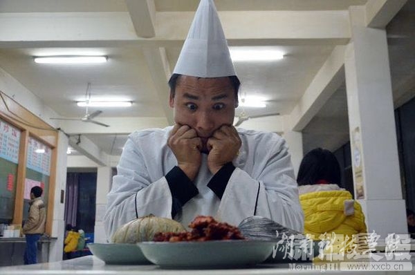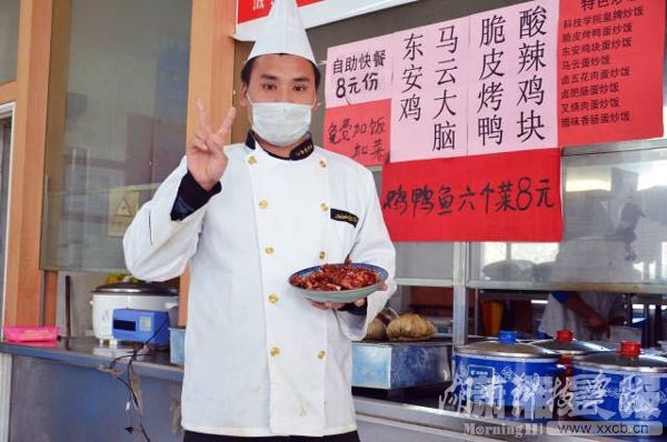 食堂师傅捧着被名为“马云大脑”的清蒸黑鱼。图/潇湘晨报通讯员 张贵