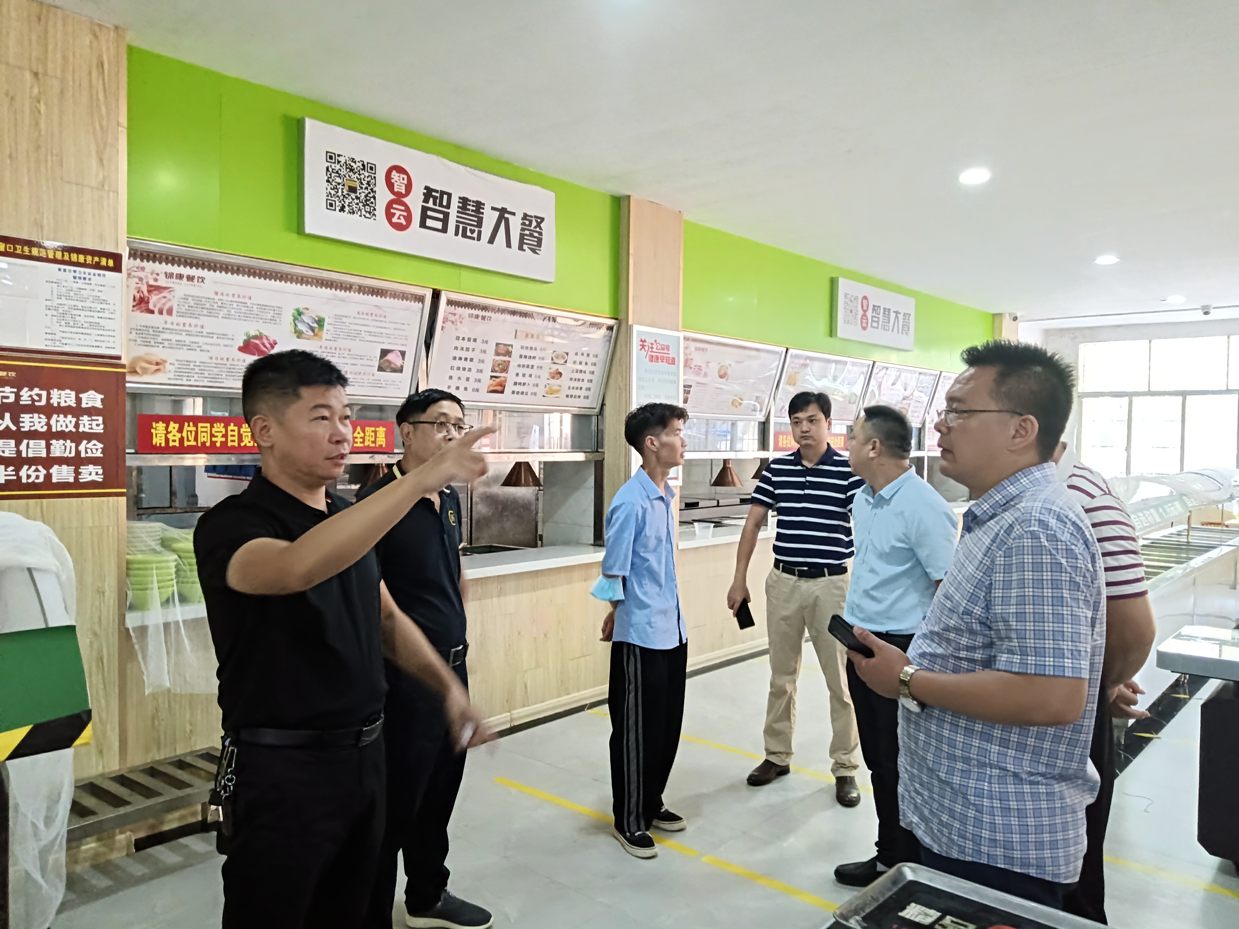 谷利民对邓国林一行表示欢迎,并介绍了我校后勤服务工作基本情况。邓国林介绍了永州师范高等专科学校后勤服务工作基本情况。考察组先后实地考察了荷园智慧食堂、教工食堂、松园学生食堂。在考察过程中,双方就疫情期间学生食堂就餐管理、食品安全监督、食材采购、稳定物价等方面进行深入交流。