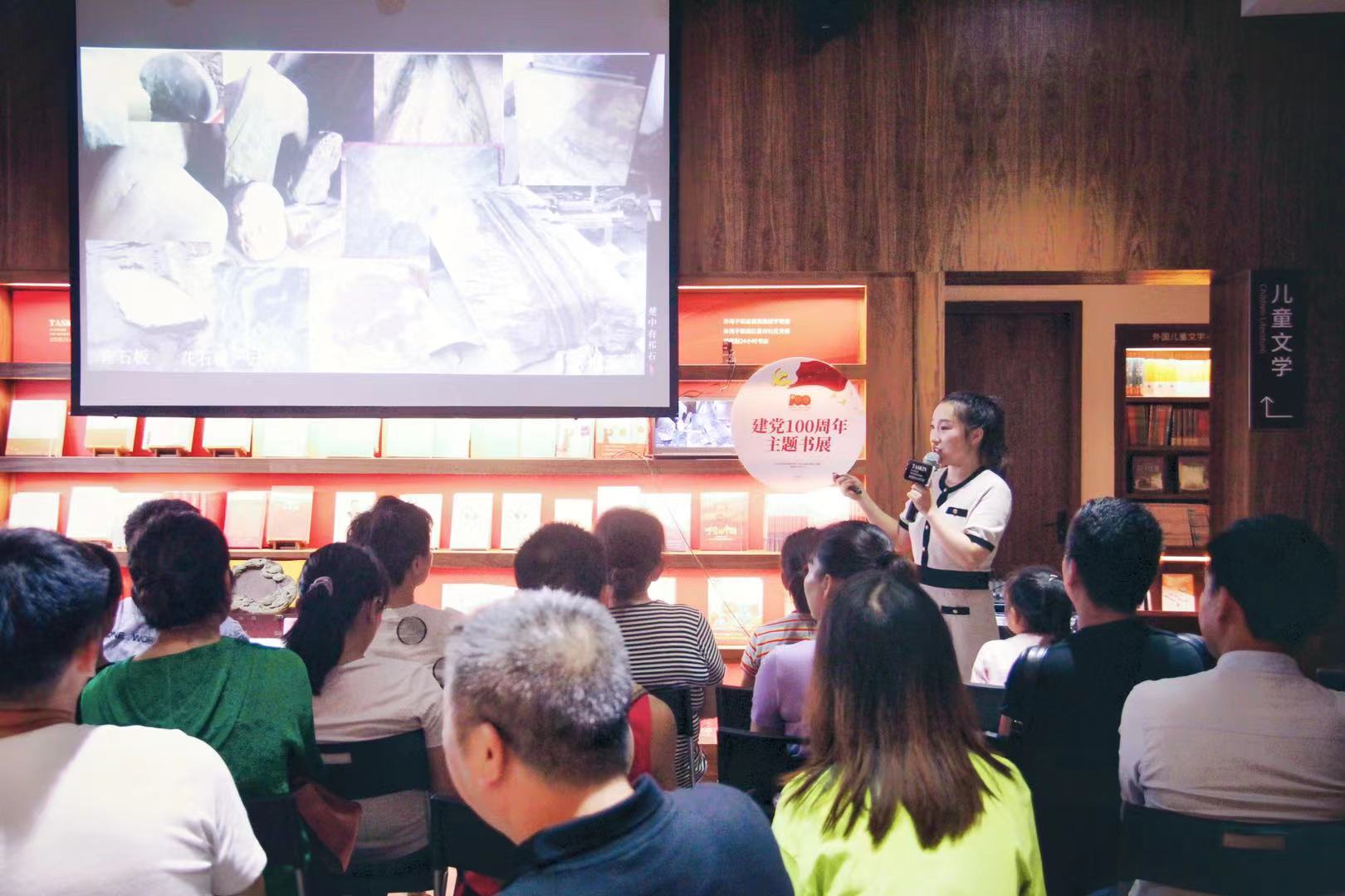 本网讯 近日,九州在线网站美术与艺术设计学院视觉传达系邓子戈老师为献礼建党100周年,于长沙德思勤城市广场书店开展社会艺术教育专题讲座,她以《楚中有祁石—湖南永州祁阳石文化赏析》为题,为社会艺术爱好者讲述了国家地理标志祁阳石相关知识,展现了永州的非遗文化无限魅力,大家纷纷表示此次讲座受益匪浅。此次讲座也是该院立足永州、服务地方,推广永州地方文化,响应国家美育“硬指标”,循序渐进做好高校艺术教育普惠大众的第一步。