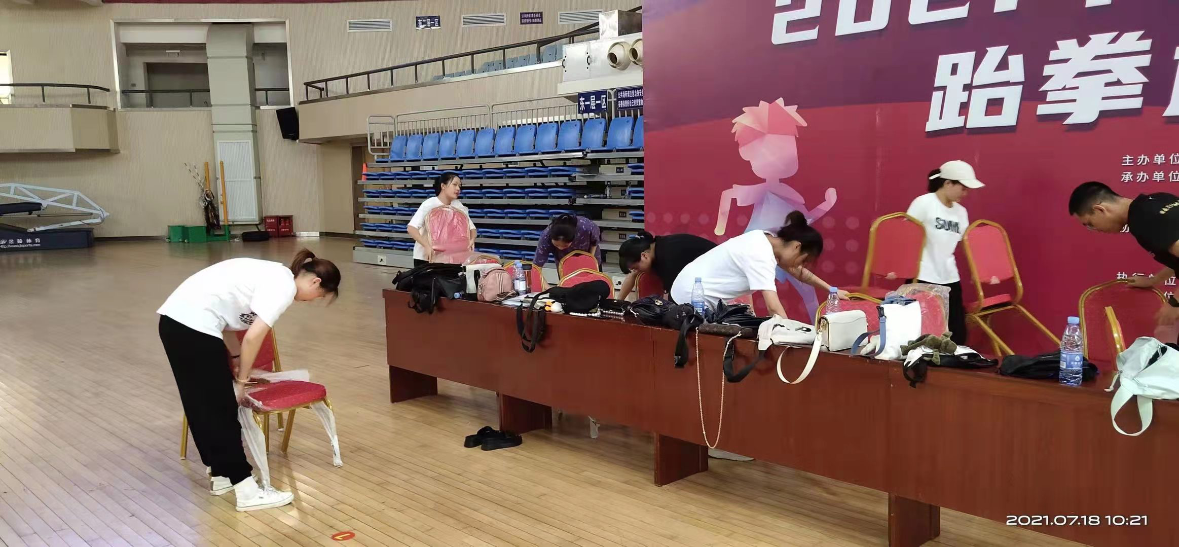 布置场地、摆放参赛物品、资格审查、引导参赛选手、检录、穿戴比赛护具......在高温酷暑的夏天里,同学们汗流浃背,但却激情似火。赛事活动现场,除了奋力拼搏的运动员,辛勤工作的志愿者们也是一道亮丽的风景线。志愿者何真真同学说“能以志愿者的身份为比赛和运动员们保驾护航,我们感到十分自豪”。
