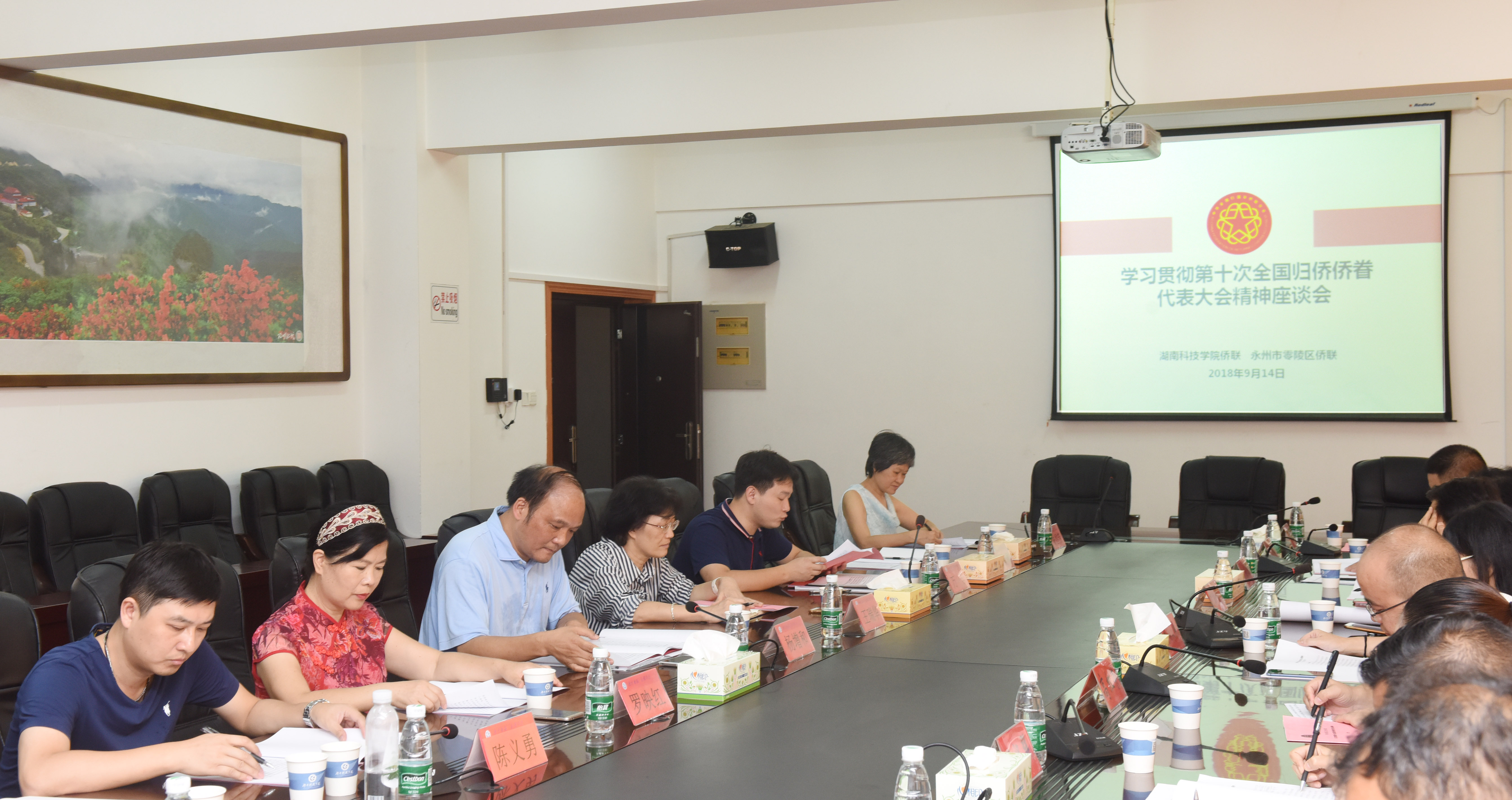 本网讯 9月14日,学校侨联联合零陵区侨联在校举行学习贯彻第十次全国归侨侨眷代表大会精神座谈会。零陵区侨联主席杨祝群主持,永州市侨联主席、传媒学院院长杨增和、零陵区委统战部常务副部长高红荣、校宣传统战部副部长王瑞华、校侨联主席万李以及校侨联全体委员及部分零陵区的侨企代表参加会议。