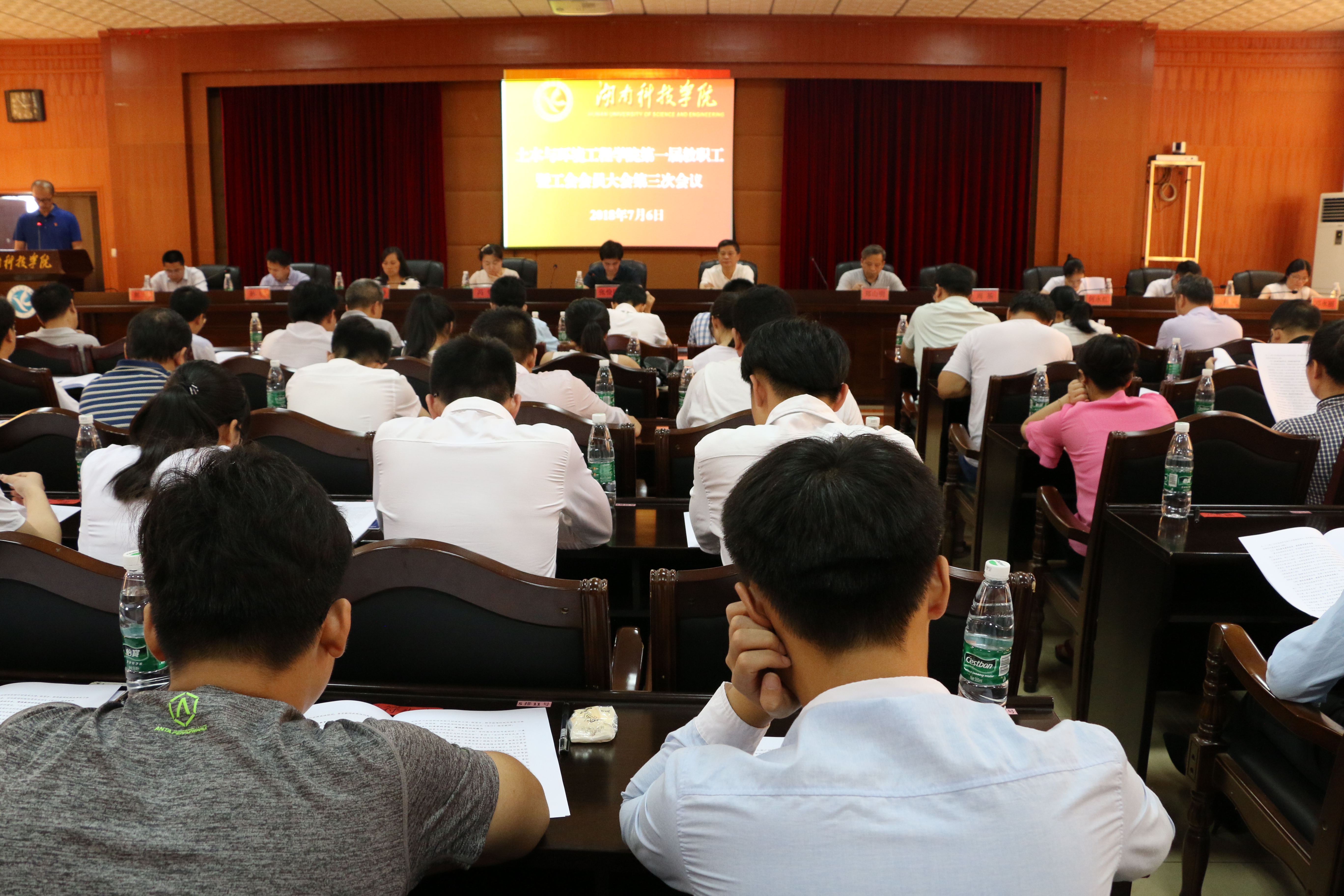 本网讯   7月6日下午,土木与环境工程学院第一届教职工暨工会会员大会第三次会议在行政楼八楼一会议室举行。党委副书记、工会主席唐艳明,副校长郑山明应邀出席会议,该院党总支书记张俭民主持会议。