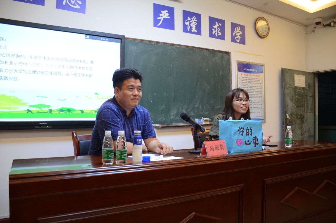 胡敏辉结合自身的成长经历和工作经验,就大学生的学习心理、寝室关系、人际关系和恋爱等方面内容,为同学们提供了各种心理建议和指导,希望大家以良好的心理素质,正确处理好学习、生活和工作等各种复杂的关系,以健康的心态顺利完成自己的大学生活。互动环节中,他以轻松幽默的讲话形式,为同学们的心事和困惑耐心地做讲解,现场气氛十分活跃,博得了在场同学们的阵阵掌声。