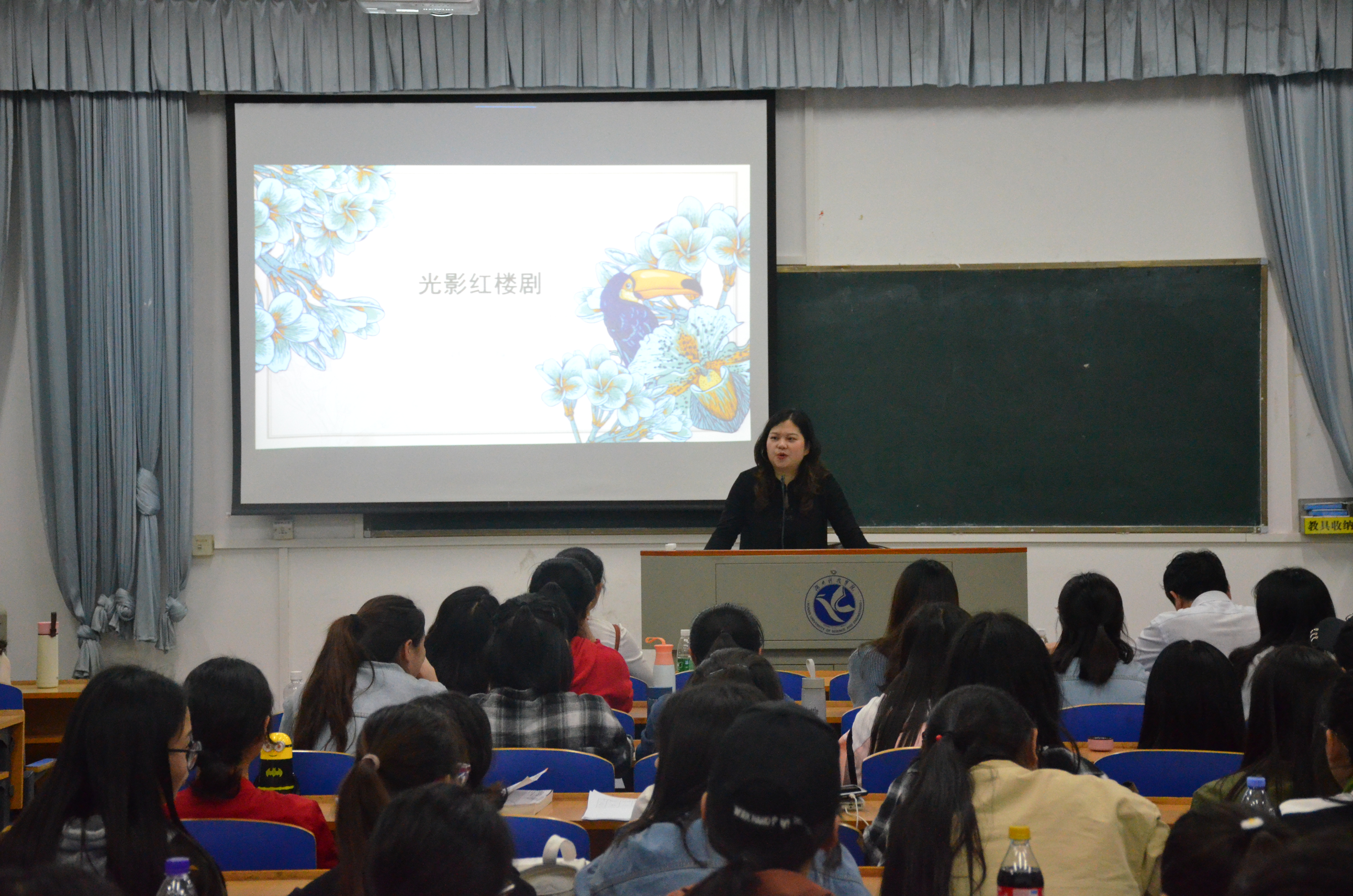 本网讯  3月27日晚,中国影视高教协会会员、湖南师范大学高欢欢博士应邀来校开展《红楼剧的悲剧意蕴探究》学术讲座,该院16、17级戏剧影视文学专业全体师生聆听了讲座。