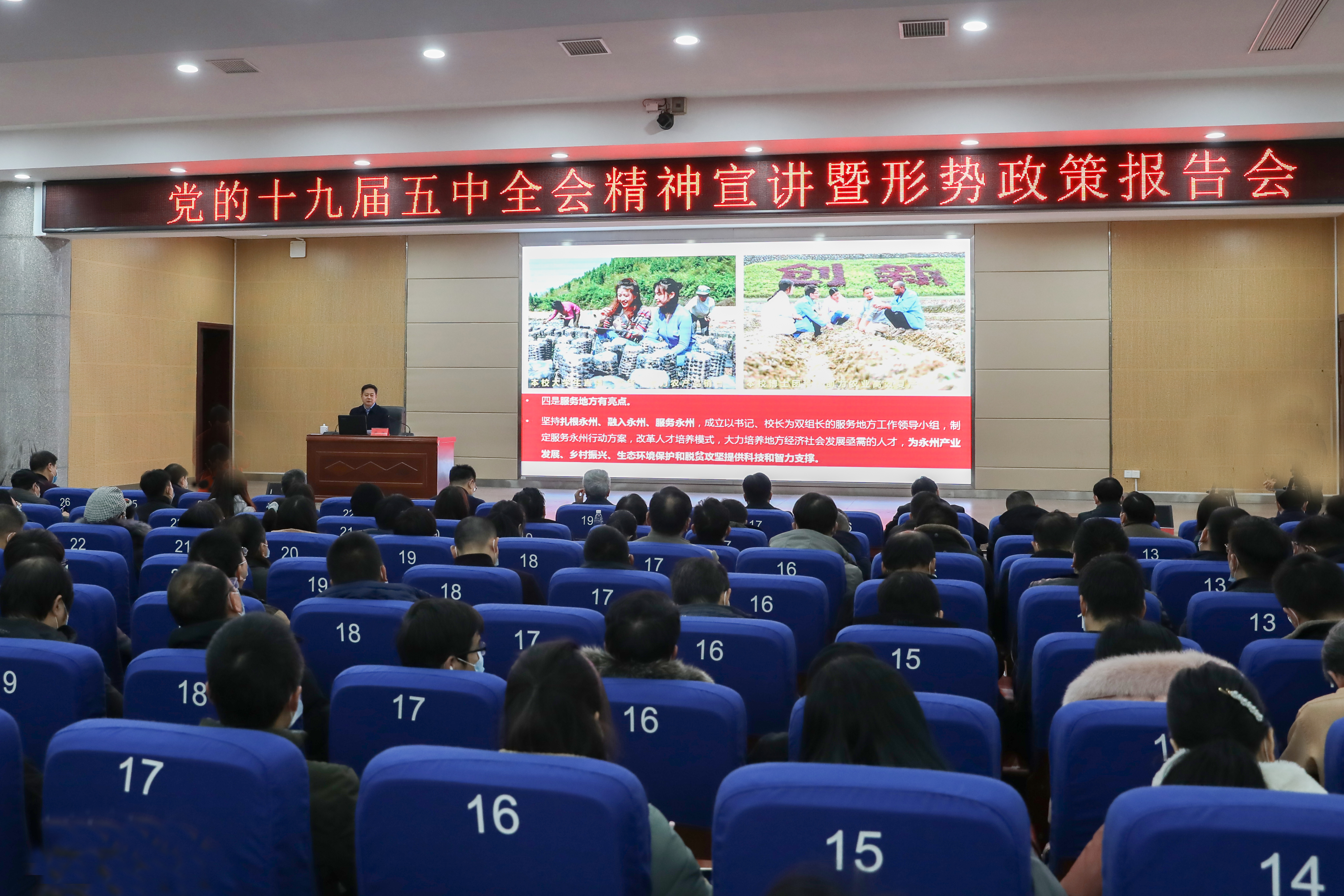 校党委书记曾宝成,校长李钢,永州市委常委、宣传部长钟君及600名师生代表聆听宣讲。