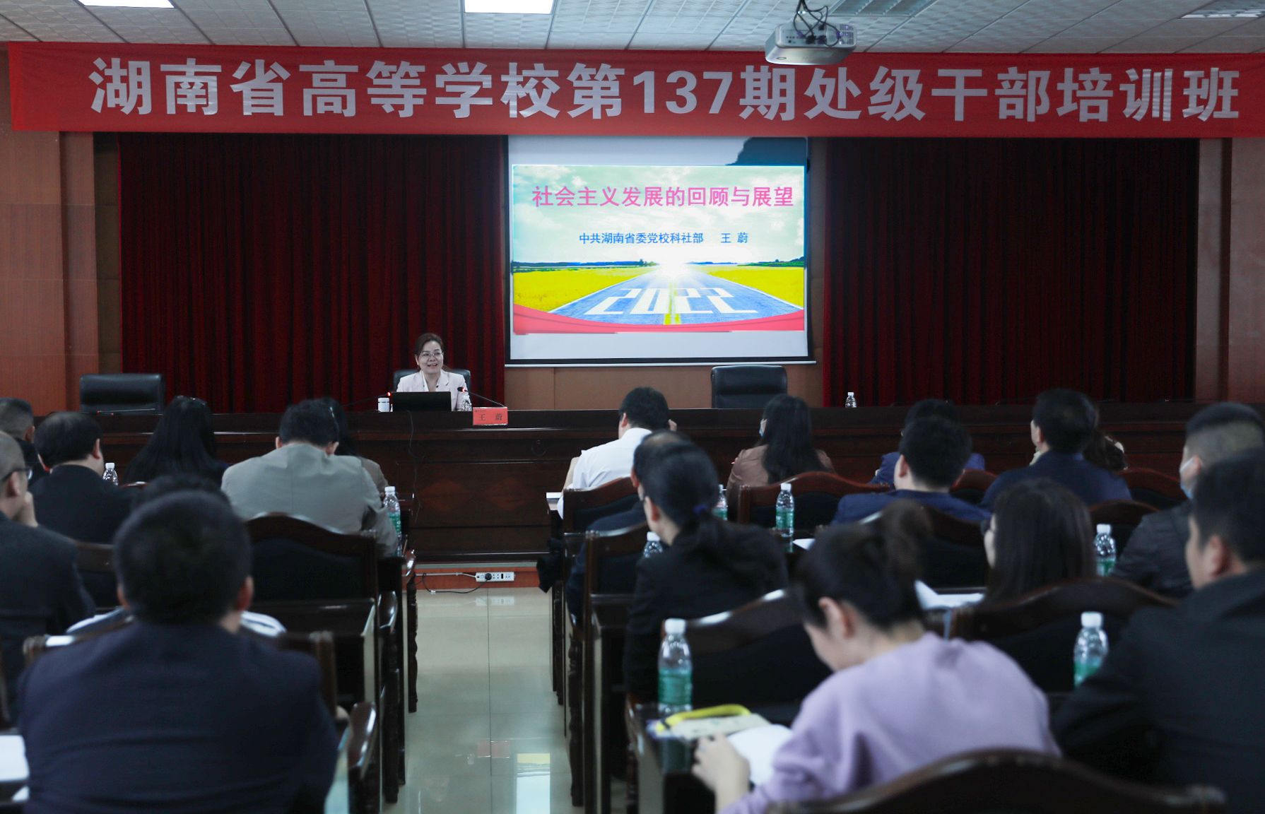 本网讯(记者 周秋珍 陈伟琳)5月20日,湖南省高等学校第137期处级干部培训班暨九州在线网站处级干部培训班第三、四课开讲。省政协常委、省政协学联委副主任孔和平,省委党校科学社会主义科研部副主任、教授王蔚来校授课。