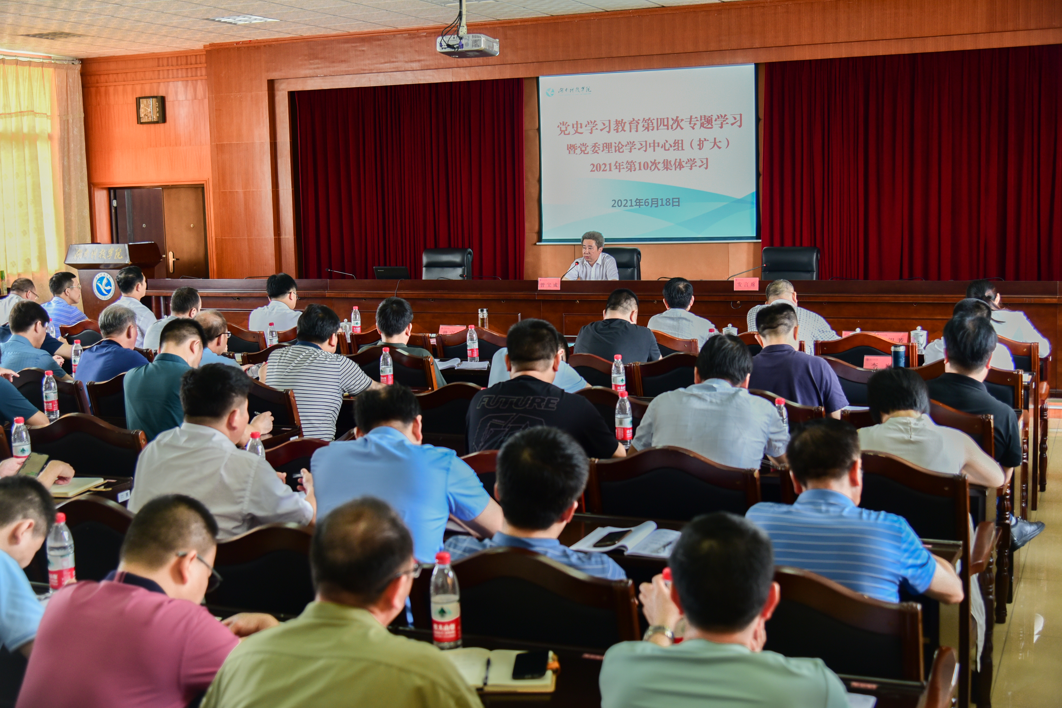 本网讯 6月18日上午,学校党委理论学习中心组(扩大)突出“学史力行”开展党史学习教育第四次专题学习暨2021年第10次集体学习,进一步把学习党史同总结经验、观照现实、推动工作结合起来,切实把学习成效转化为工作动力和发展成就。党委书记曾宝成,党委副书记、校长李钢,校领导、党委理论学习中心组成员,全体中层干部参加学习。党委委员、副校长李常健、何福林作研讨发言。
