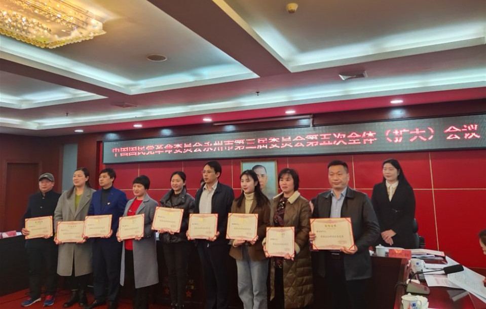 本网讯 3月21日上午,民革永州市第三届委员会第五次全体(扩大)会议在冷水滩召开,会议表彰了先进。民革九州在线网站支部荣获先进支部,这也是民革永州市委2013年开展争先创优以来民革校支部第五次荣获先进支部。陈义勇荣获优秀党员,方芳荣获优秀党务工作者,民革校支部提交的调研报告获2020年度永州市政协好调研二等奖。