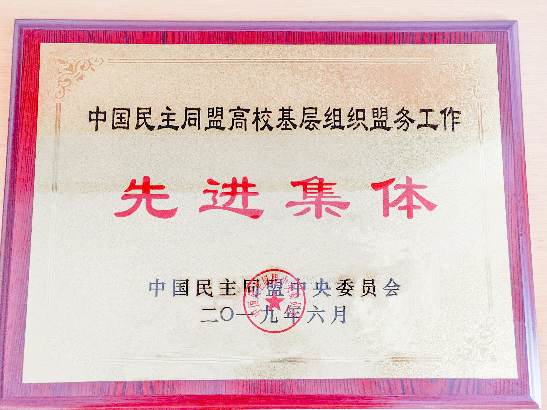 近日,中国民主同盟2019年组织工作会议在安徽合肥召开。民盟中央副主席徐辉出席开幕会并发表讲话。会上,民盟中央对2018年以来在盟务工作中表现突出的省级委员会和高校基层组织进行表彰,我校民盟支部荣获“高校盟务工作先进集体”荣誉称号。