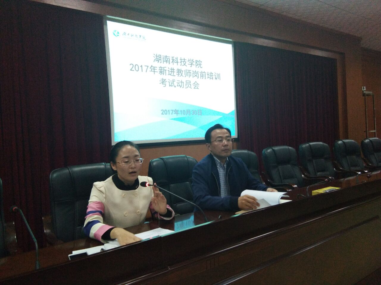 10月30日晚上,我校在行政楼八楼一会议室召开2017年岗前培训考试动员会,与会人员包括2017年参考人员和补考人员。