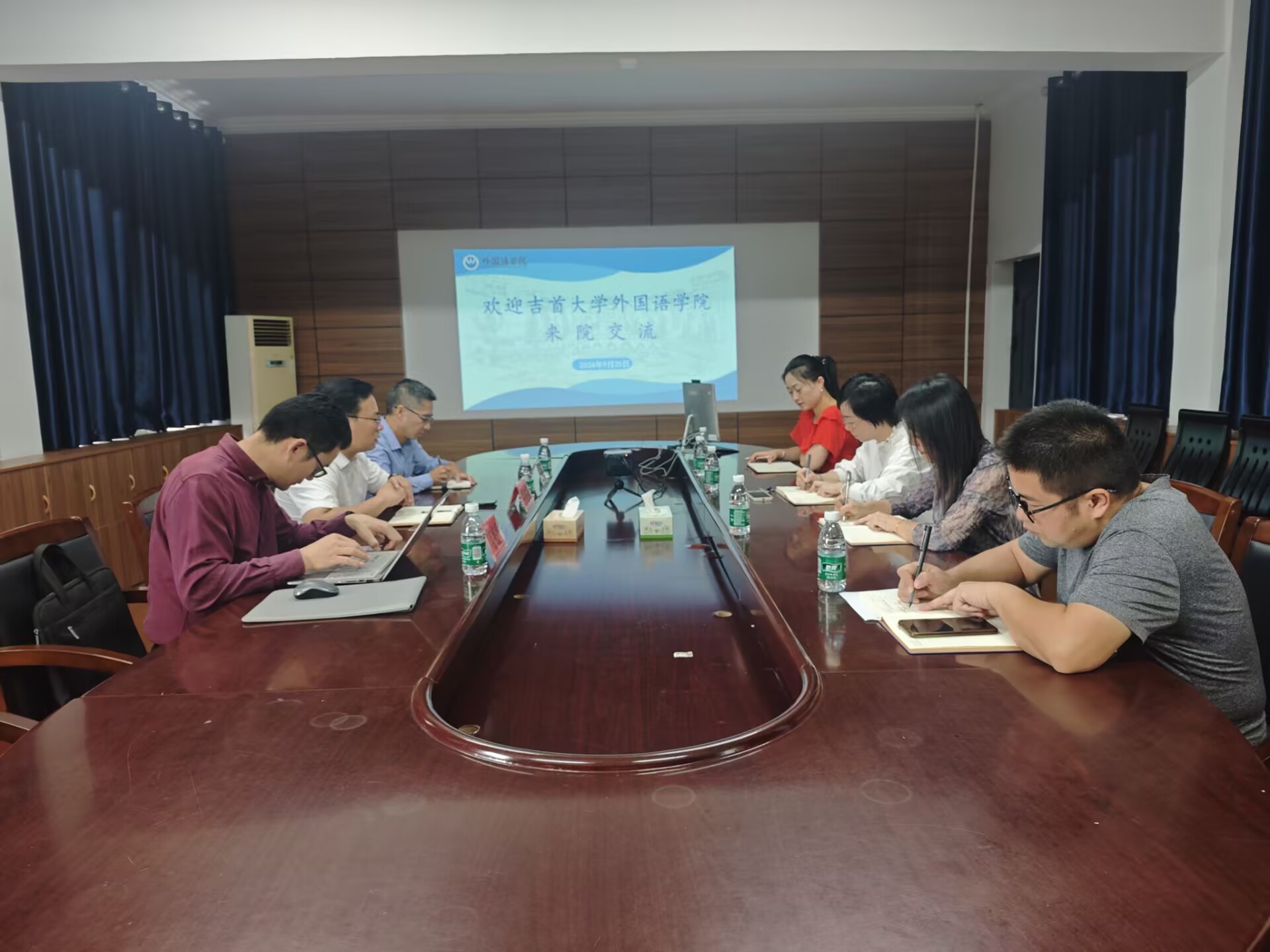 本网讯 9月25日,吉首大学外国语学院党委书记简功友、党委副书记肖宪平、副院长唐小田一行来院交流。我院院长何丽萍,党总支副书记罗晶,副院长胡维、黄昊文参加交流座谈。