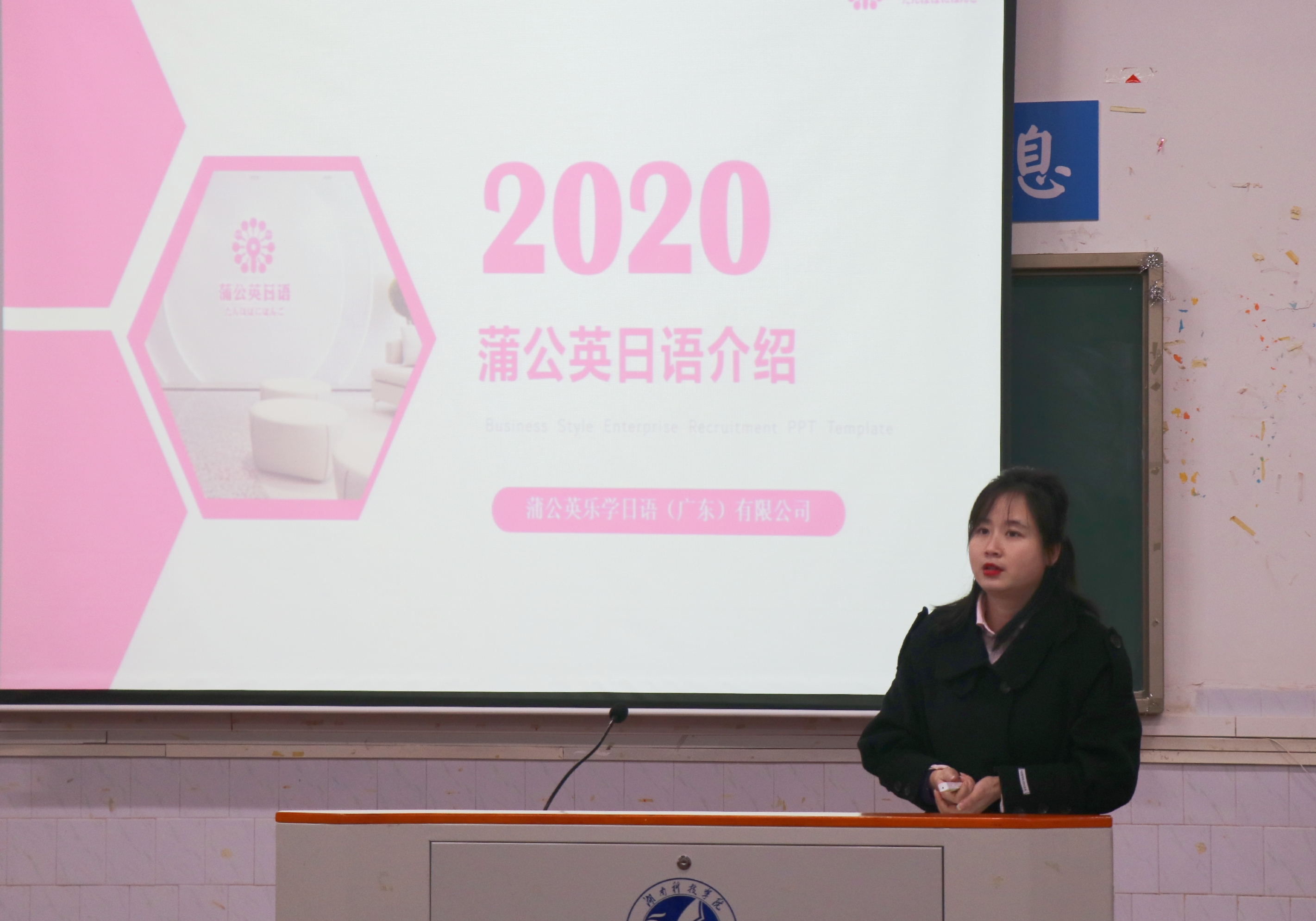 会议开始,湖北词源教育投资管理有限公司代表吴天宇向大家介绍了公司发展状况荣誉成就以及在职待遇情况。随后蒲公英日语公司代表阳文静介绍了公司发展良好的态势,并表达了其公司对于日语专业在读大学生未来展望。接着,广东行之教育培训有限公司法人代表唐芸与大家分享了公司的发展历程,通过我院2020届省优秀毕业生杨霞在公司工作的实际情况给同学们提供借鉴与参考。