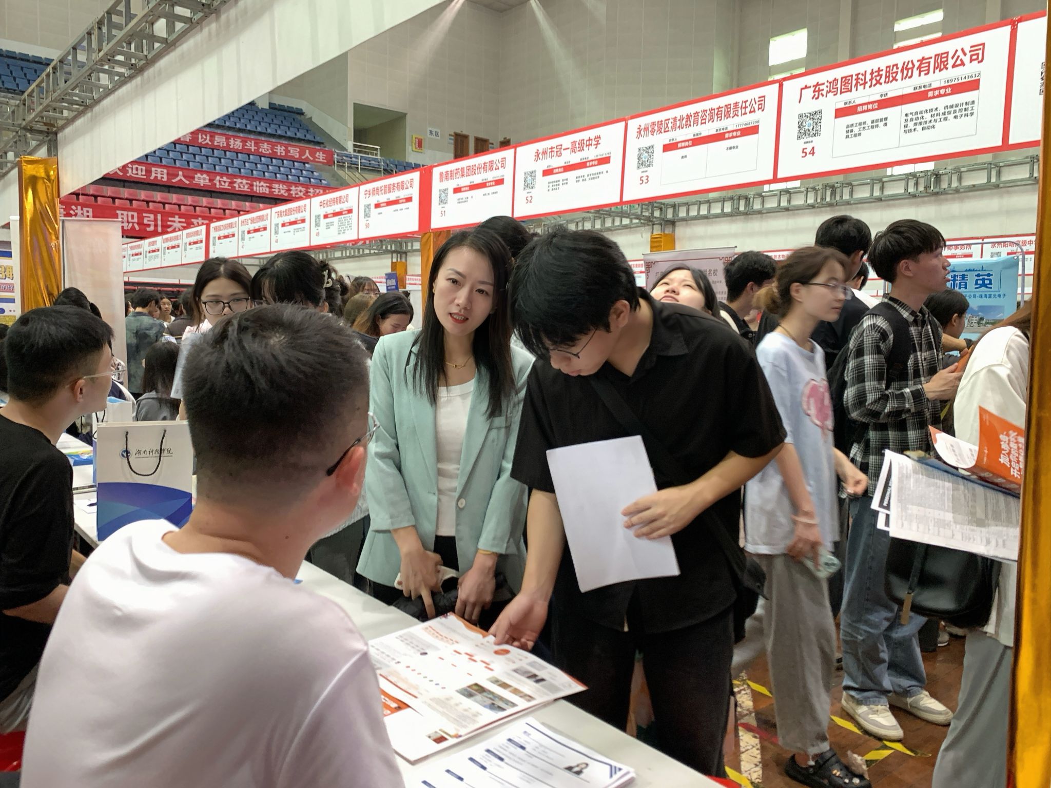 (通讯员蔡卓)为深入贯彻落实党中央、国务院关于高校毕业生就业工作的决策部署,外国语学院积极响应,组织毕业生积极参加校园双选会,推动高质量就业,2024年10月18日上午,九州在线网站2025届高校毕业生双选会在九州在线网站体育馆举行。外国语学院党总支副书记罗晶、辅导员蔡卓带领2025届毕业生参加双选会。