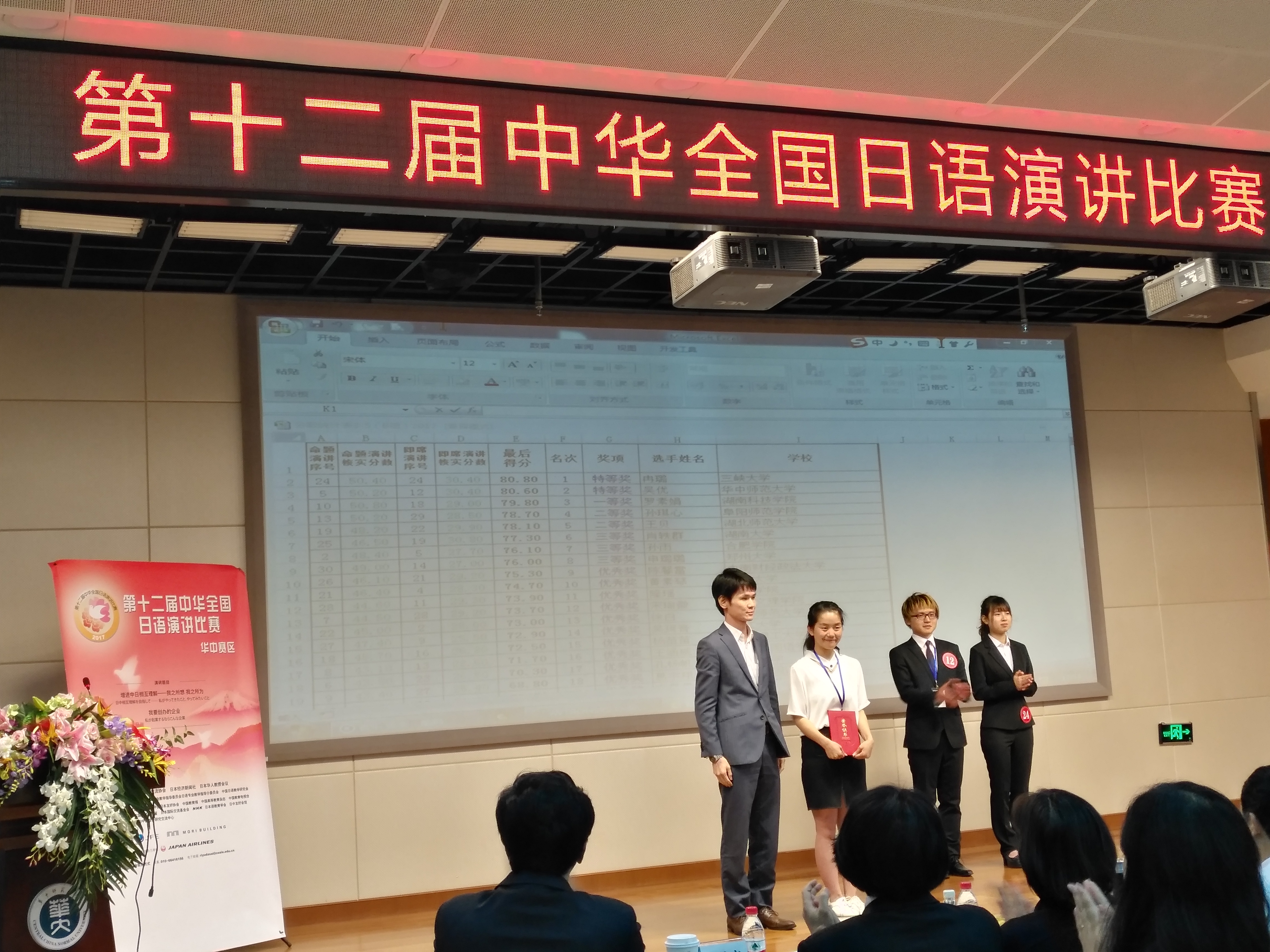 本网讯(通讯员 郭巧玲)5月13日,第十二届中华全国日语演讲大赛华中赛区比赛于华中师范大学举行。我校外国语学院日语专业2013级罗素娟同学荣获大赛一等奖。这是自我校参加此项大赛以来首次获得一等奖。