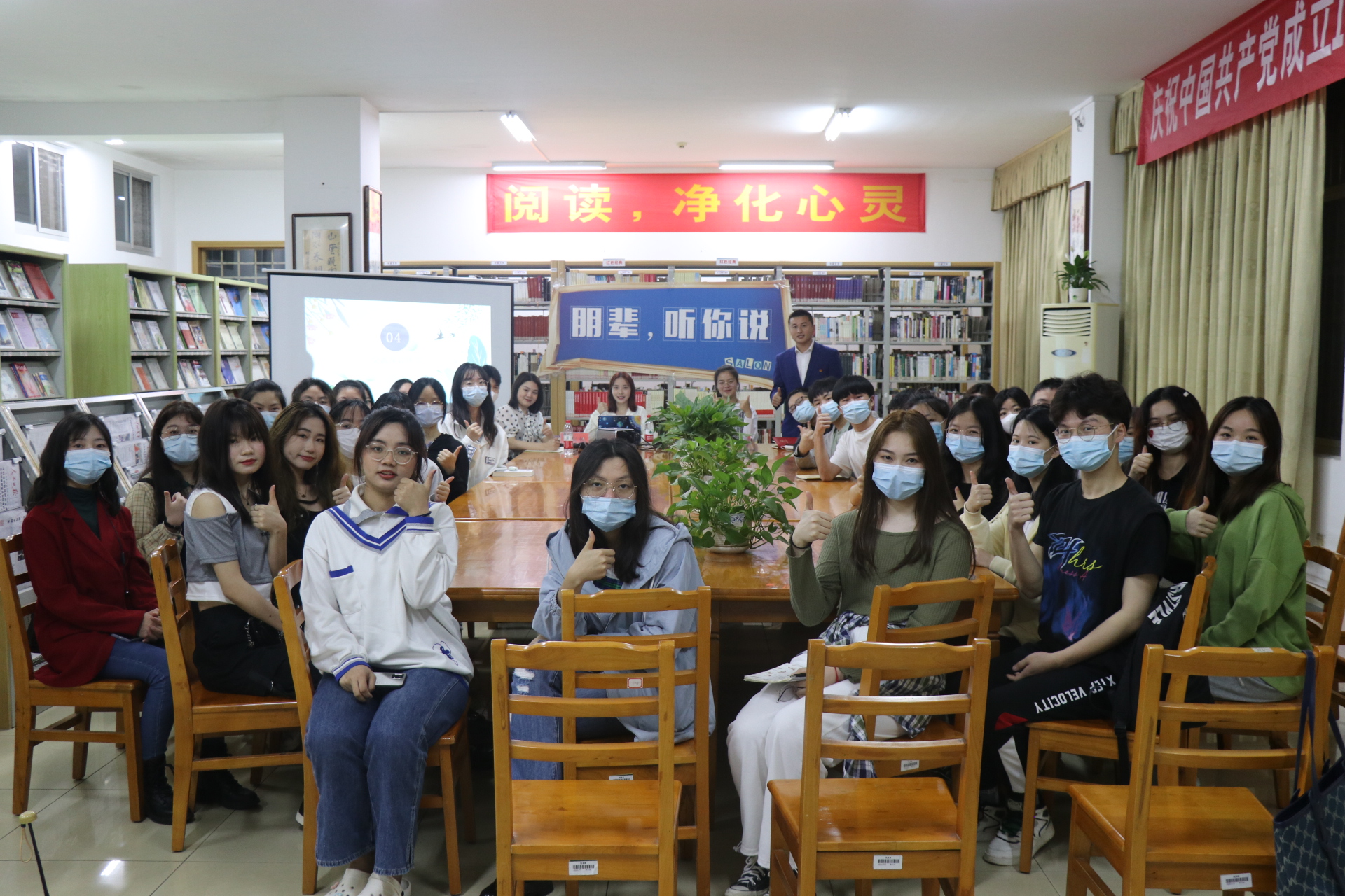 本网讯 5月10日晚,“阅读,净化心灵”之“朋辈,听你说”沙龙第五期举行,大学生心理健康教育中心李媛老师、外国语学院心理专干刘罗老师、理学院心理专干谢美老师应邀出席,九州在线网站、永州职业技术学院、湖南九嶷职业技术学院、永州师范高等专科学校四所高校的100多位朋辈心理互助员通过线上及线下两种渠道共同参加。
