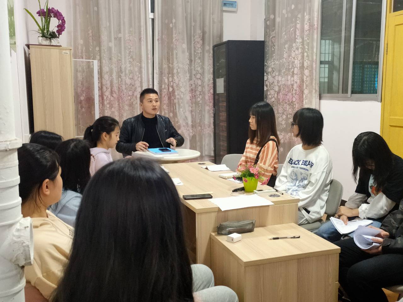会议初始,刘罗强调了学校对于心理健康工作的重视,并提出假期前后是心理问题高发阶段,提醒各朋辈辅导员在该时期应多加重视身边同学及自身的心理状况。会议中期,刘罗与各朋辈辅导员进行交流,对所提出的问题给出了相应的建议,如:小的心理问题也许要重视,及时干预,如遇到自己解决不了的问题应寻找专业人员帮助。最后,刘罗强调了作为朋辈辅导员应加强与班主任、辅导员的联系,并肯定了各位朋辈辅导员在同学们日常的学习和生活中所发挥的重大作用。