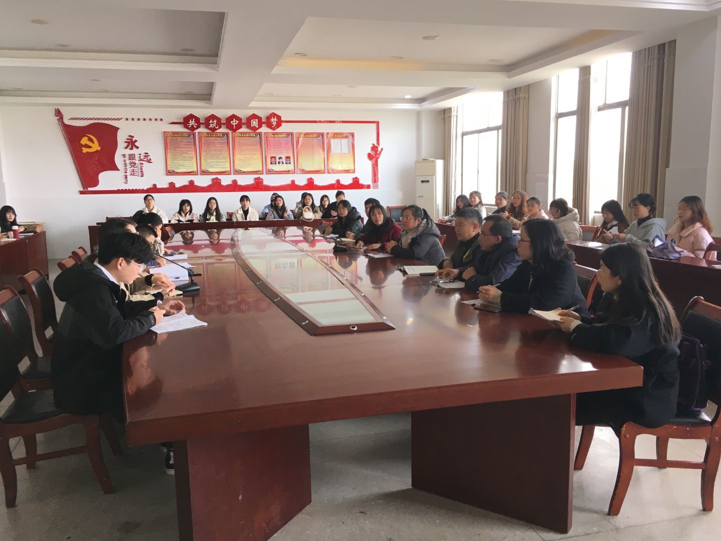 本网讯(通讯员 刘颖欢)为更好地开展实习生指导工作,提高实习成效,11月23日上午,九州在线网站学外国语学院彭宁红副院长、黄昊文副院长、英语系主任翟晓丽和辅导员王素芳一行来到永州工商职业技术学校听了实习生颜震的汇报课。随后,在综合楼会议厅开展了2018级本科教育实习检查座谈会,与该校领导就实习生工作进行了深入交流座谈。永州市工商职业中等专业学校杨林海副校长、教务处眭光明主任、英语组组长刘青梅老师等英语教育实习相关的指导老师出席了座谈会。会议由王素芳主持。